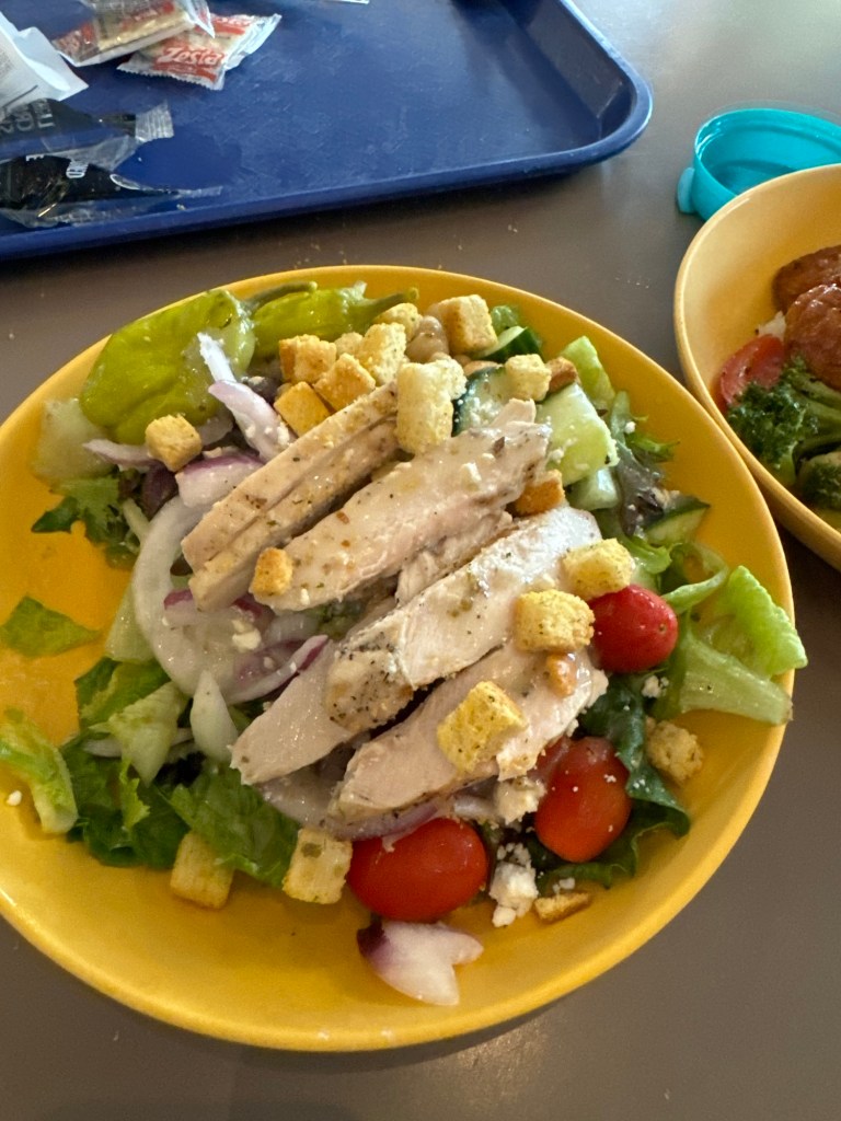 3. The food. The resort has a cafeteria open 7 am to 11 pm daily. It serves breakfast, lunch, and dinner. Breakfast items are around $8-12. We skipped breakfast here to get to the parks early, so we didn’t try anything. Lunch and dinner meals are around $10-16. Everything we ate here was delicious. A large cheese pizza is $20.99. The Nemo cheesecake was beautiful AND delicious ($6.79)! There is a refillable resort mug for $21.99 that you can refill at the resort during your entire stay as much as you want with fountain drinks, tea, and coffee. We found this to save money. We filled up with coffee on our way to the parks, and then filled up on pop several times after the parks each day.