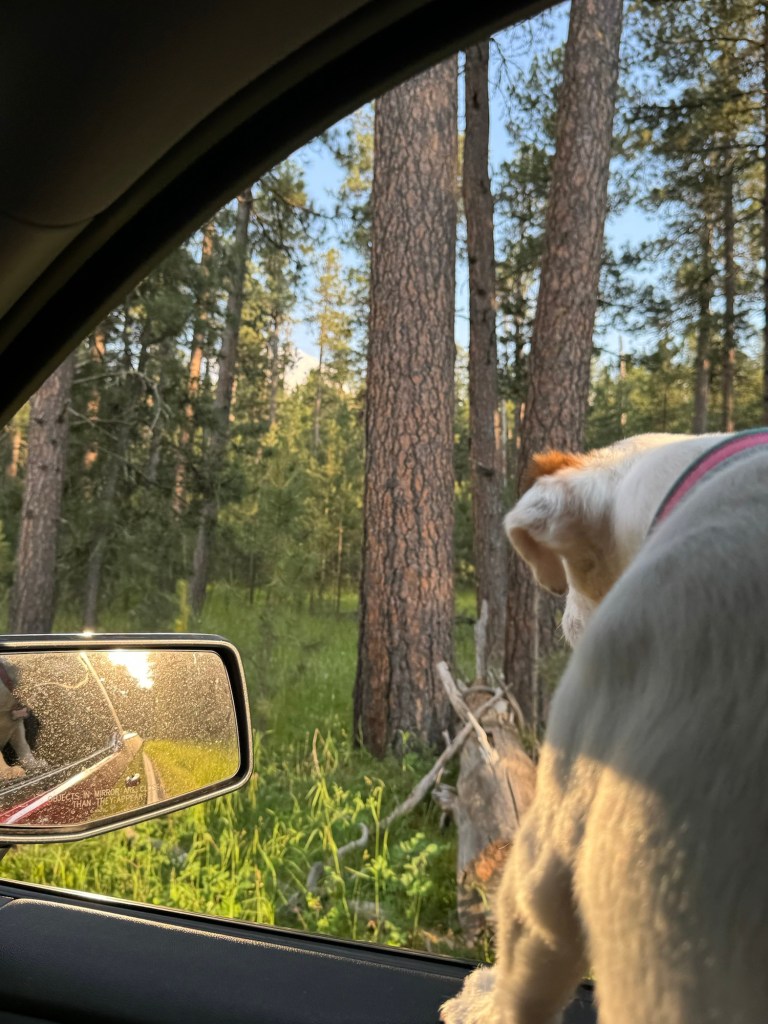Our dogs went with us. They were on my lap looking out, but Bear actually got scared of the cliffs and sat on the floor by my feet the rest of the drive, while Zelda was hanging out of the window the whole trip. 🤦♀️
