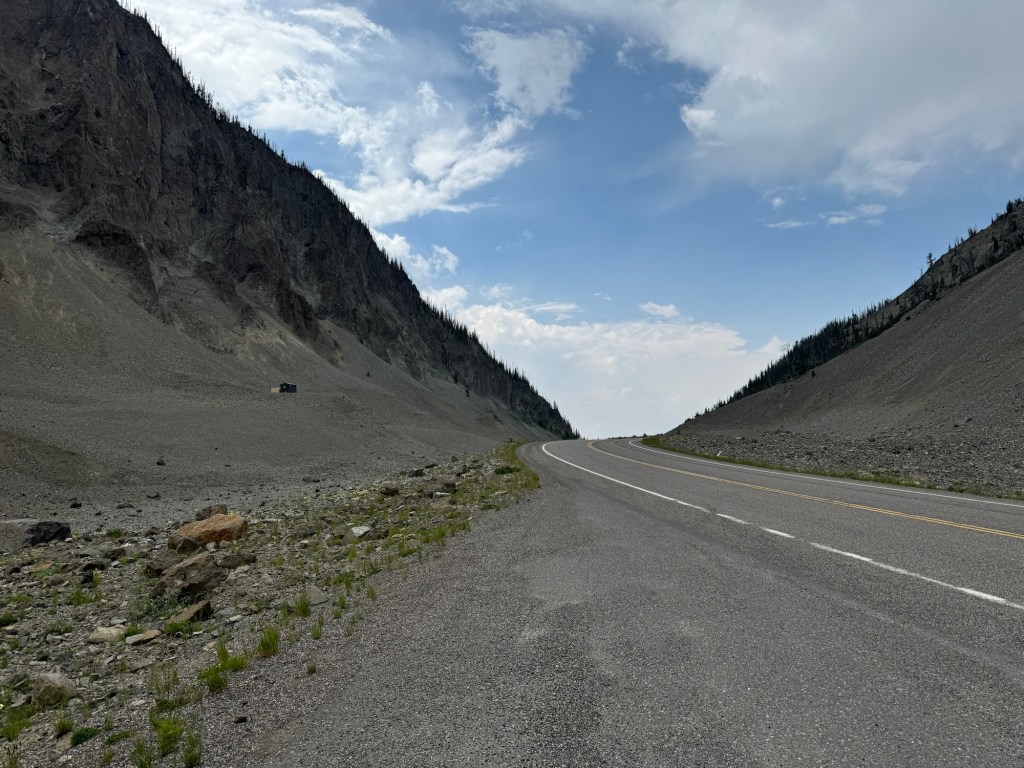On Day 10, we made the drive from Cody, Wyoming to the West Entrance of Yellowstone. Many of the popular sites in Yellowstone are close to the west entrance, so we made the drive from the east entrance near Cody to the west. The drive takes quite a long time pulling a trailer, and we stopped quite a bit for pictures and sightseeing. Just before officially entering the park, we got gas and talked with some of the gas station workers. There are so few people in the area, that their school has 2-3 students per grade! We also couldn’t believe that the only place to get gas for miles only charged $3.69 a gallon.