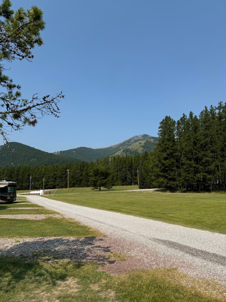 For every other campground stay, we booked ahead, and then passed campgrounds that we wished we’d stayed at. And we passed ALOT of them. So, we decided to find our Glacier campground when we arrived, but…there weren’t a lot of campgrounds for RVs, or they were full, or they didn’t have 50 amp hook-up. So, we couldn’t find anywhere to stay, said a prayer, and immediately saw a sign for a campground. We pulled in, and they had ONE site left! We took it, and it’s probably my favorite place we’ve stayed so far. There was a ham radio convention there, so they had live music that we could hear from our camper. Everyone has been so nice. We met some full-time campers who gave us lots of great advice. The campground is very peaceful and scenic. It’s named Glacier Meadow RV park, and it was $90 a night for full hook-up before a 10% Good Sam discount.