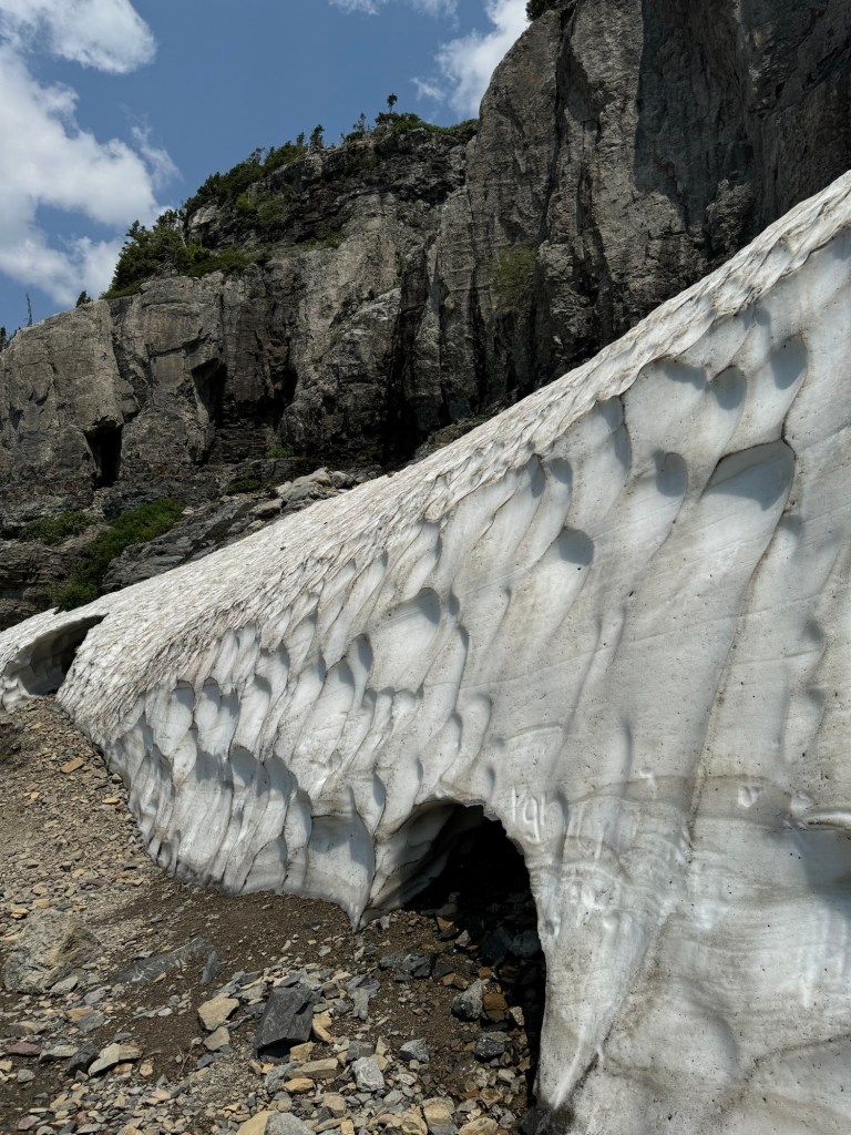 The East side entrance runs across the park to the West Glacier entrance via the scenic and famous “Going-to-the-Sun Road”. The road takes about 2 hours to drive one way without stopping. It took us about 3.5 hours because we stopped a lot to take pictures and explore. On the drive, we saw mountains, cliffs, tunnels, mountain goats, snow, lakes, waterfalls, crystal clear streams, and the spectacular scenery we’ve ever seen. Again, the pictures don’t even come close to the beauty of seeing it in person.