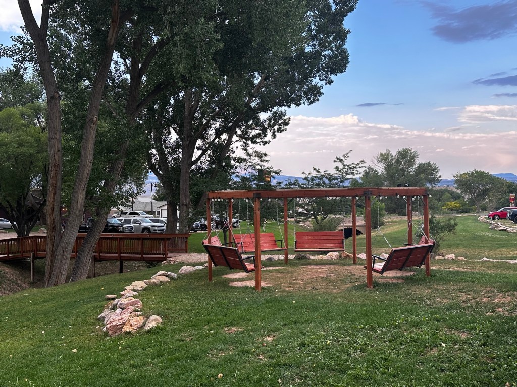 The campground we are at is definitely the best one yet! It’s called Bryce Pioneer RV Village. It was only $55 a night and has a pool, hot tub, restaurant, live country music nightly, a large fire pit, a gym, and a gift shop. The hot tub was incredible after 2 days of driving, and we sat in it for quite awhile. It’s in a cute town too.