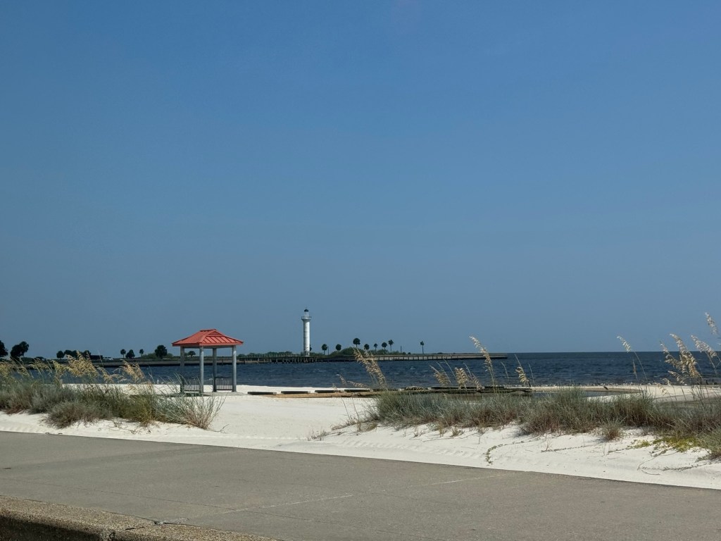 On Day 34, we drove from Baton Rouge, Louisiana to Biloxi, Mississippi. We really liked the KOA in Baton Rouge and wished we hadn’t already reserved a park in Biloxi so we could have stayed longer. We did get an extended check out so we could do laundry before leaving. We are staying 4 nights at the Gulf Beach RV Park for $85 a night. After we arrived and set up in Biloxi, we took Zelda on a shopping spree at PetCo to cheer her up. We bought her toys, treats, and calming pills. We took her to the dog park at the RV resort to play afterwards. We ate dinner, and then went to the pool for the evening. The pool is directly next to our site, and it overlooks the ocean.