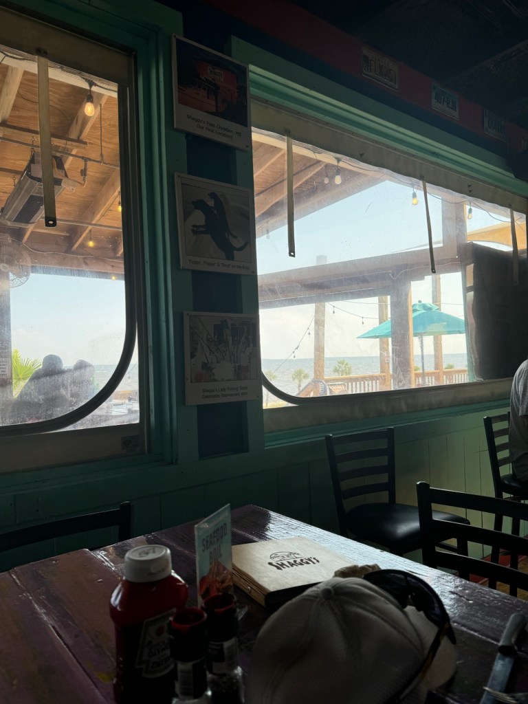 After working out, we were starving, so we stopped at a highly recommended and visually appealing restaurant with a beach shack vibe right on the ocean named “Shaggy’s”.