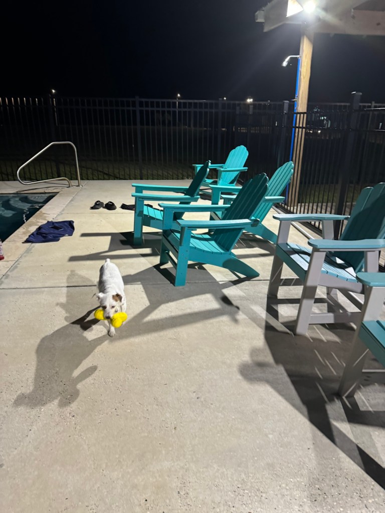 There was a large group at the pool from Louisiana, and they treated us like we were a part of their group. They were Cajun, and we enjoyed hearing their stories about catching alligators and living on the bayou. One of them had a Jack Russell named Milo, so we let Zelda play with him, and she seemed to really enjoy it.
