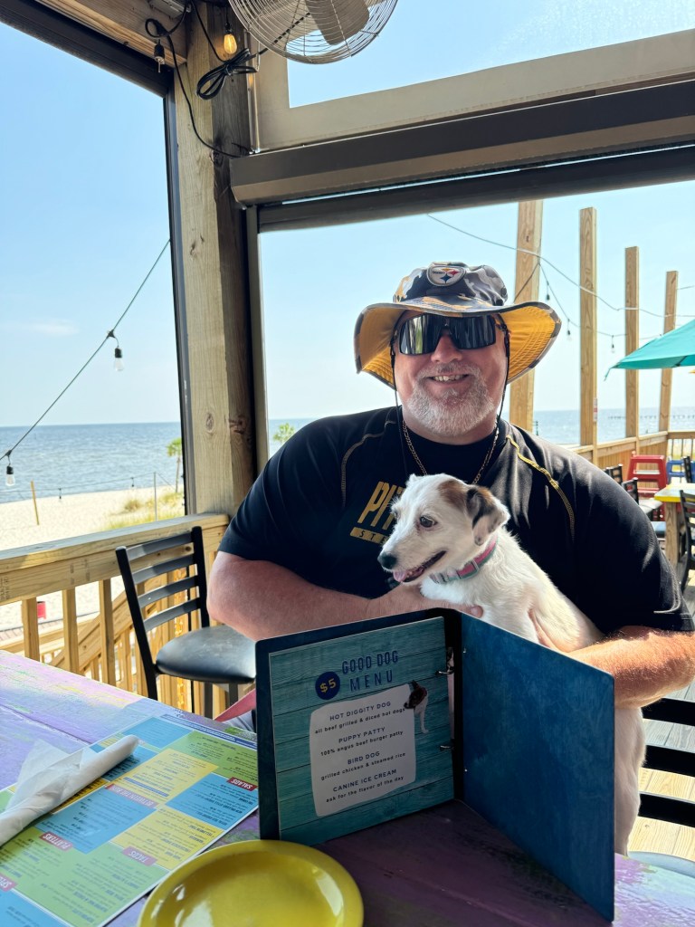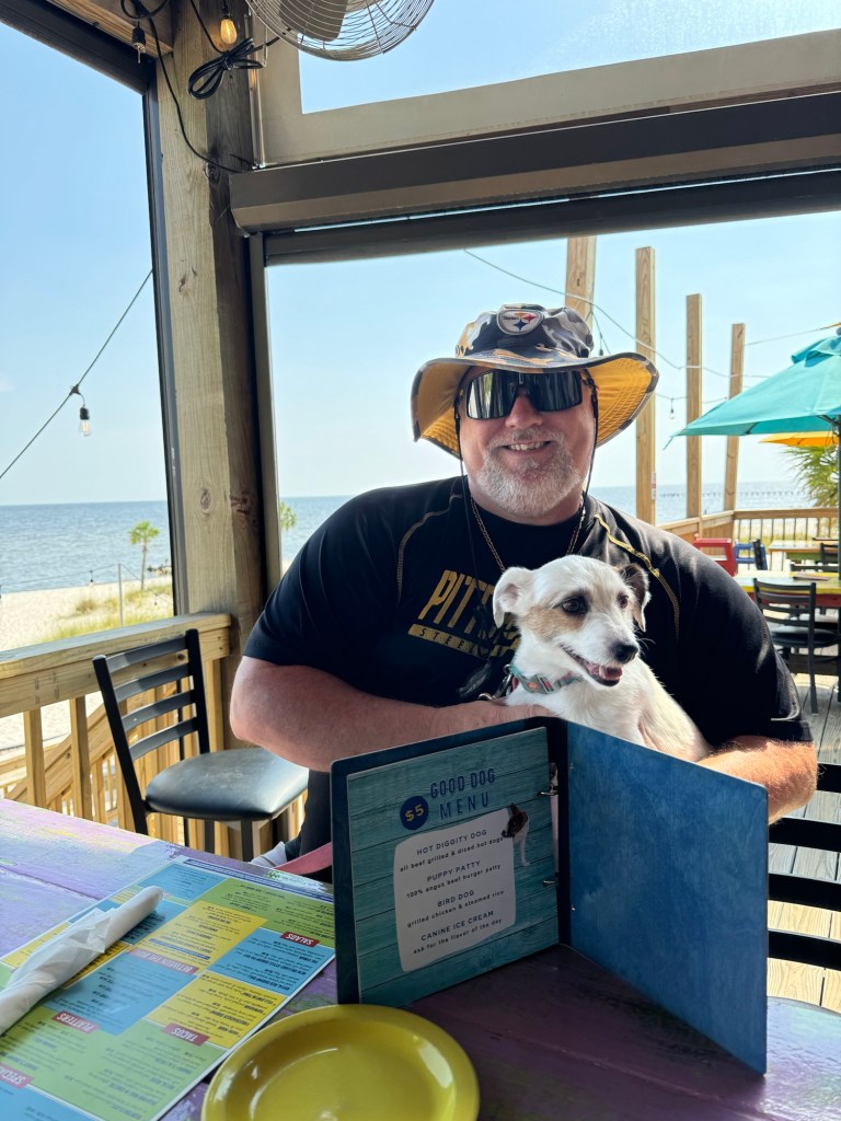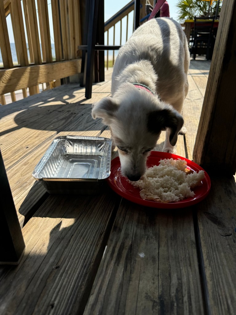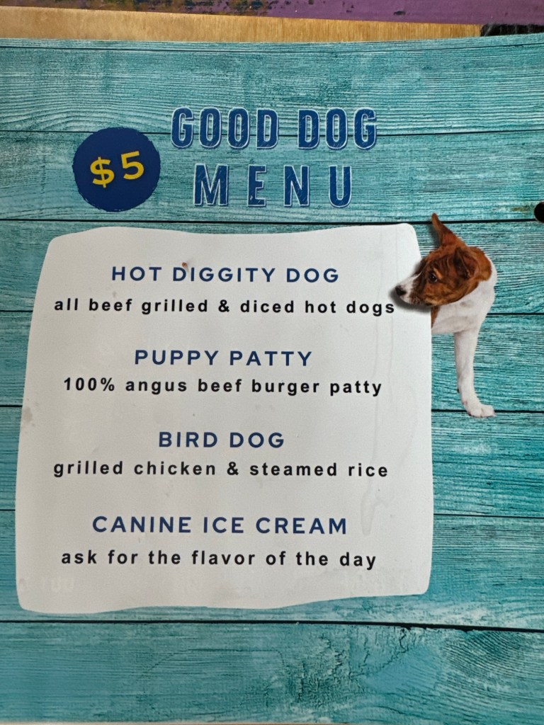 We took her to Shaggy’s which is right on the ocean. They are dog friendly (outside only) and even have a special dog menu.