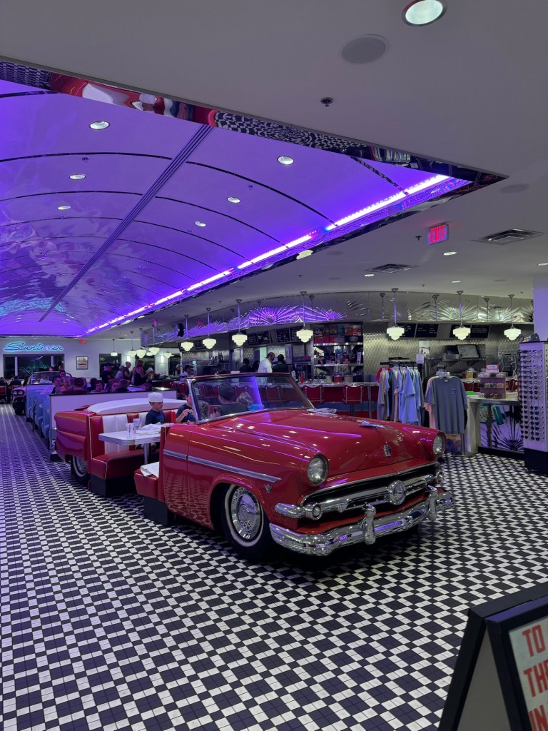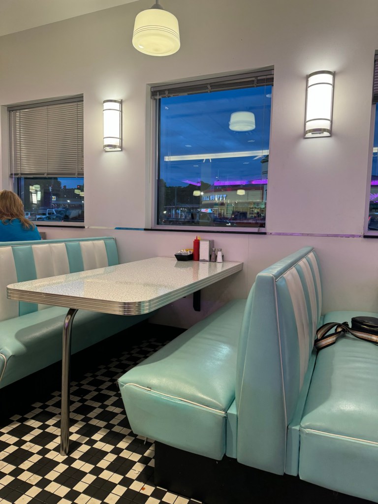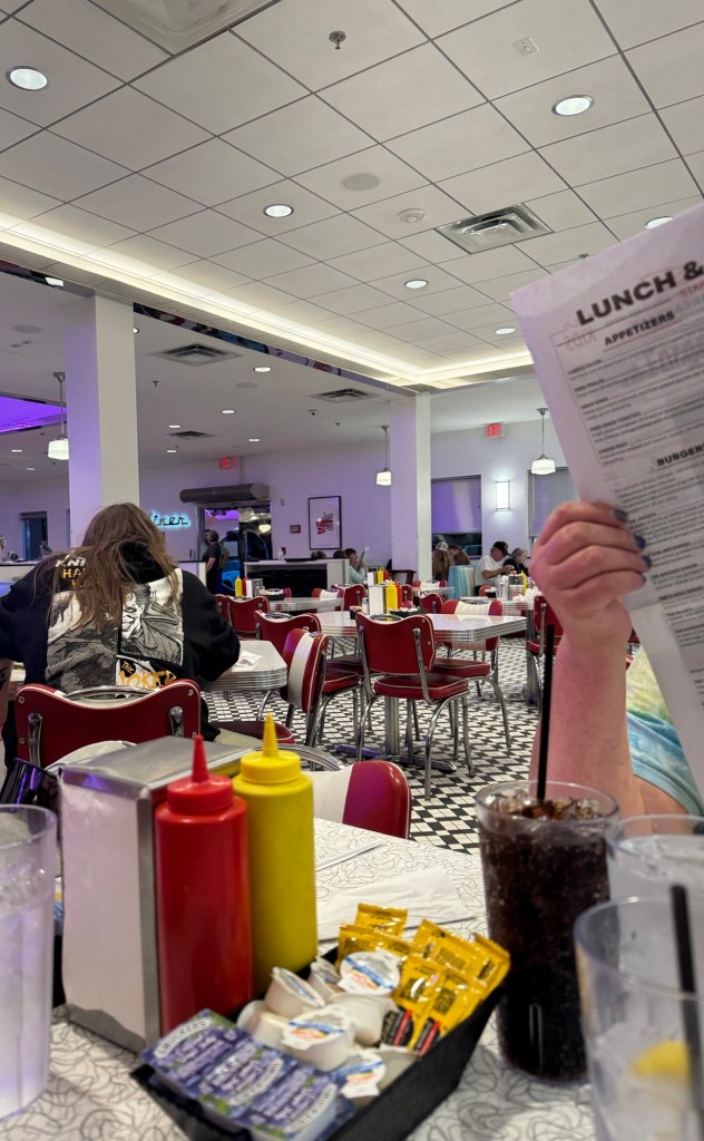 We ate at really cute restaurant called the Sunliner Diner. They played 50s music, had great ambiance, a jukebox, cars to sit in, a gift shop, and even had the menus on a newspaper with articles and facts from the 50s. The food was good- not great- but the atmosphere made the stop worth it.