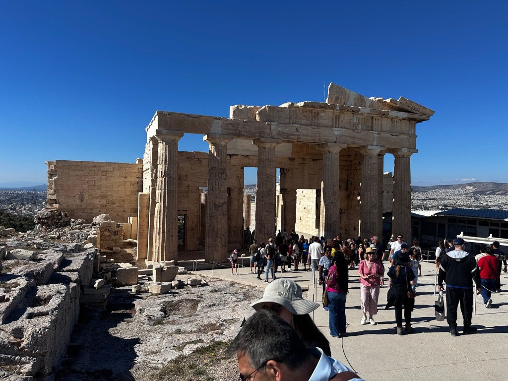 The Acropolis was unbelievable. I’ve seen pictures so many times, but it was incredible to see it in person. It’s so much more breathtaking than it looks in the pictures. Be sure to skip the long lines and buy your tickets online. Also be sure to book early enough as they used timed entry tickets. They only let visitors in on the hour. Our tickets were for 1 pm. We arrived at 12:30, so we had to get in line and wait to be admitted at 1 pm. If we hadn’t purchased our tickets online, we would have had to wait in a different VERY long line to buy tickets, and it’s possible the tickets would have been for 2 pm or later, so it’s REALLY helpful to buy them online.