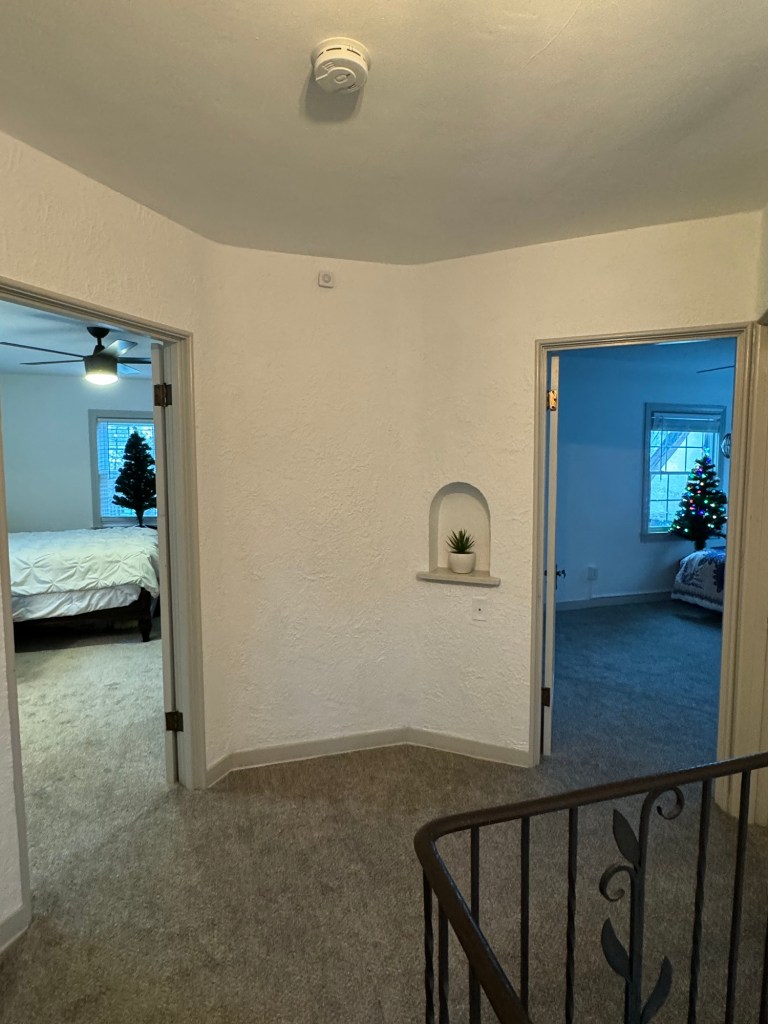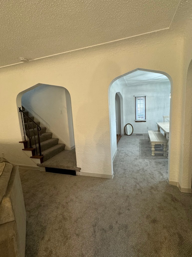 The painting and carpeting were a huge decision. Everyone seems to love hardwood floors and advised us to keep them along with all of the wood trim… but…our goal was to change the house from dark and old feeling to warm, bright, and “homey”, so they had to go!😆