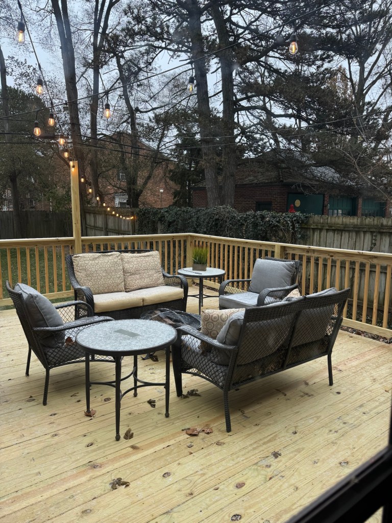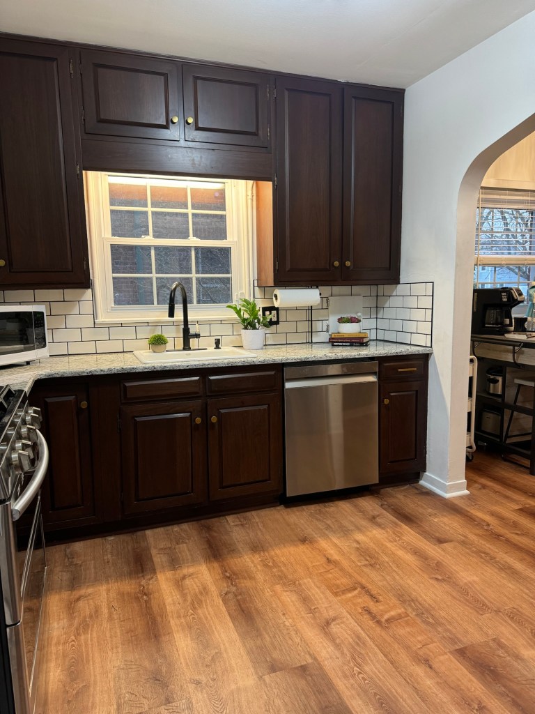 We didn’t do major renovations. This wasn’t a Joanna Gaines project, but what we were able to do totally changed the feel of the house. We used local people we knew to get great deals on the updates. We had the whole house painted including trim and doors ($3,600), carpeted ($2,700), changed all the light fixtures ($1,000), changed the countertops to granite ($1,300), changed the backsplash to subway tile ($665), cleaned up the landscaping, took off the old screens on the porch, took off an old door, and added a deck in the backyard ($6800). We sold our other house for $410,000. We bought this house for $224,900 with $7,000 back in concessions at closing to put towards renovations bring the “true” price down to $217,900.