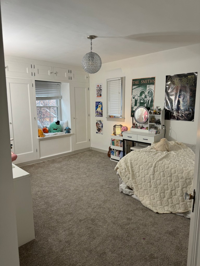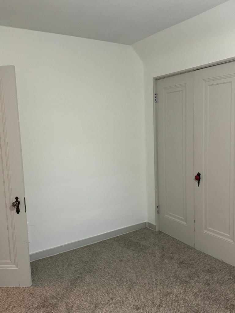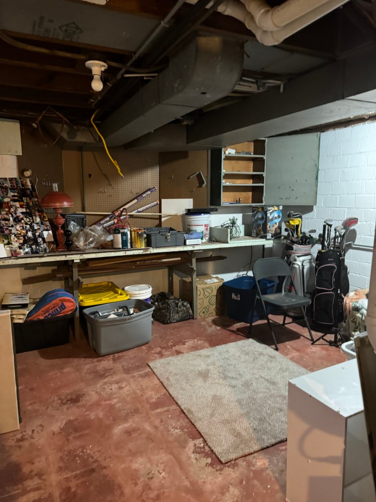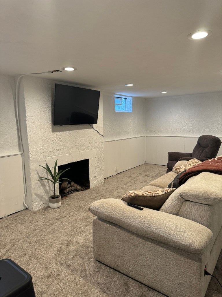 One thing I forgot to get before pictures was the basement. We finished one room down there, the rest is just storage. The room had an orange, gross floor and blue walls. It was SO ugly that it wasn’t even included in the listing photos. Here’s the “after”.