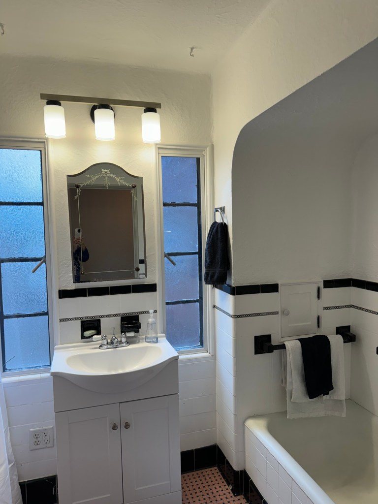 Heres the replaced lighting in the hallway and the 1/2 bath. No before pictures…