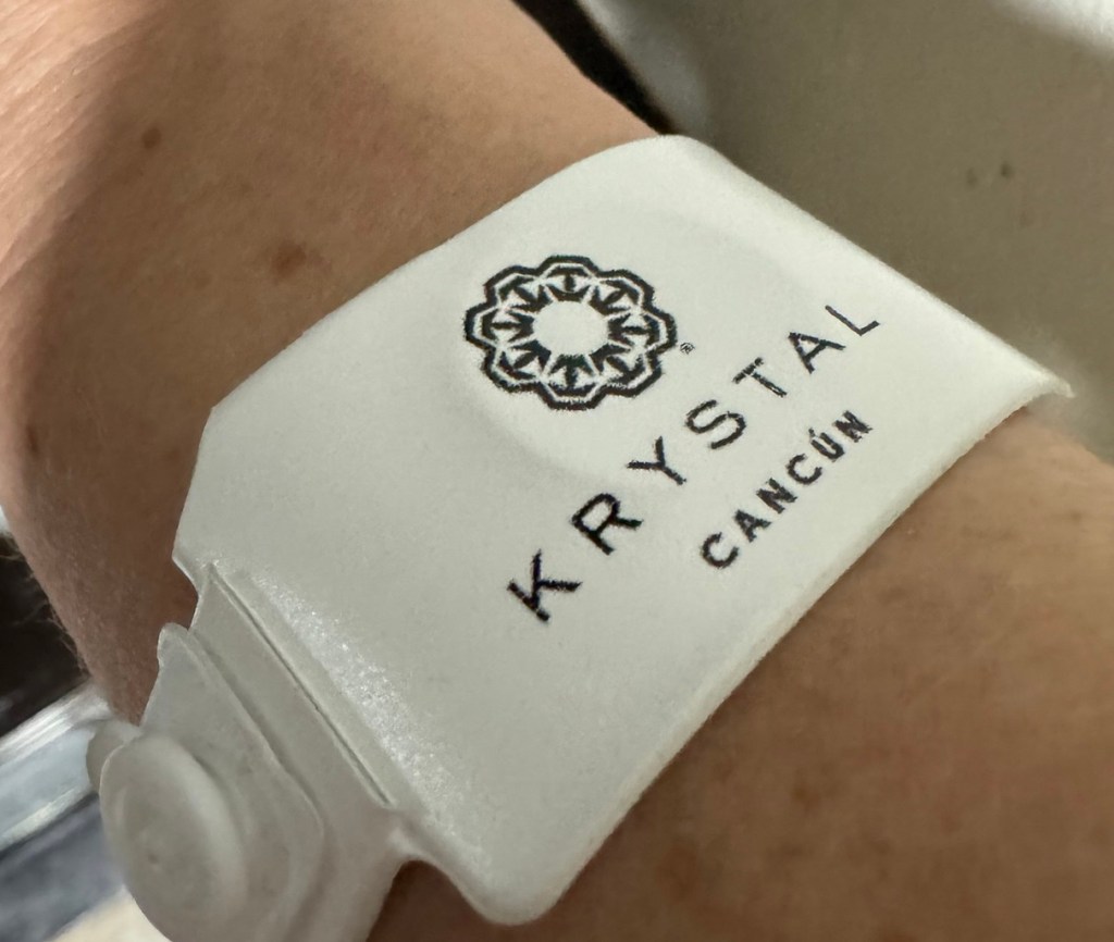 Your room key is a waterproof wristband that also gets you into the restaurants for the free food.