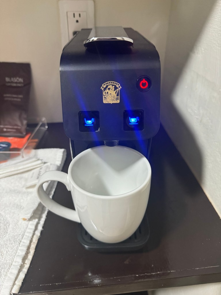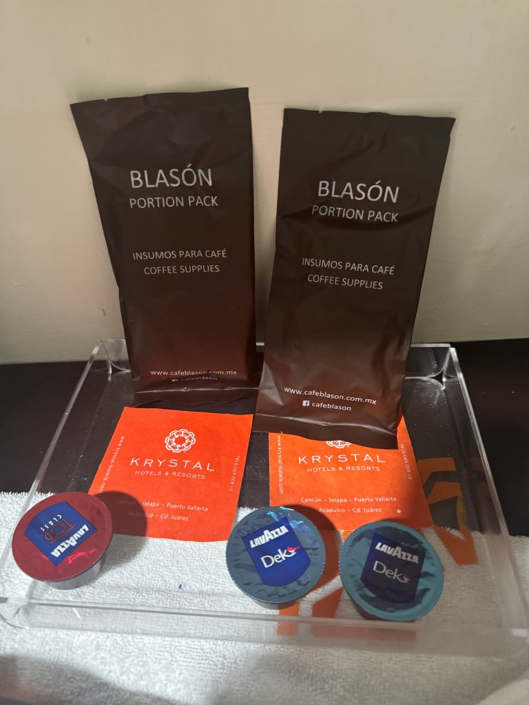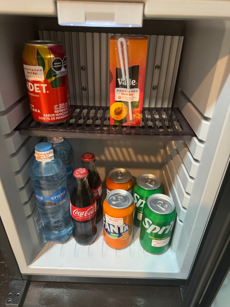 The rooms include a DELICIOUS expresso machine and a mini-bar stocked daily with water, pop, and juice at no charge for all-inclusive.