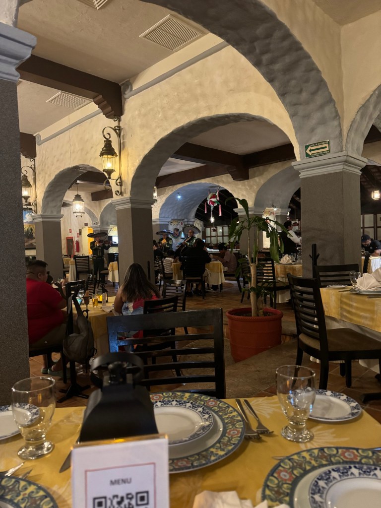 There is an Asian restaurant (Las Velas with a great ocean view), Mexican (el Mortero), and Italian/ Mediterranean (el Mediterraneo). Each of these offer reservations at 6:00, 7:00, 8:00, and 9:00 only. You can only make reservations for the same day and/or one day in advance. I suggest making reservations when you get up in the morning for the following day. If you don’t want to make reservations, you can always eat at the buffet in Aquamarina (6:00-11:00 pm) or get room service (24 hours). Room service food is always free for all-inclusive guests, but there is a $5.00 US service fee that you have to pay upon delivery with credit or debit only. The resort does not take cash except at the front desk. Servers can accept cash tips.
