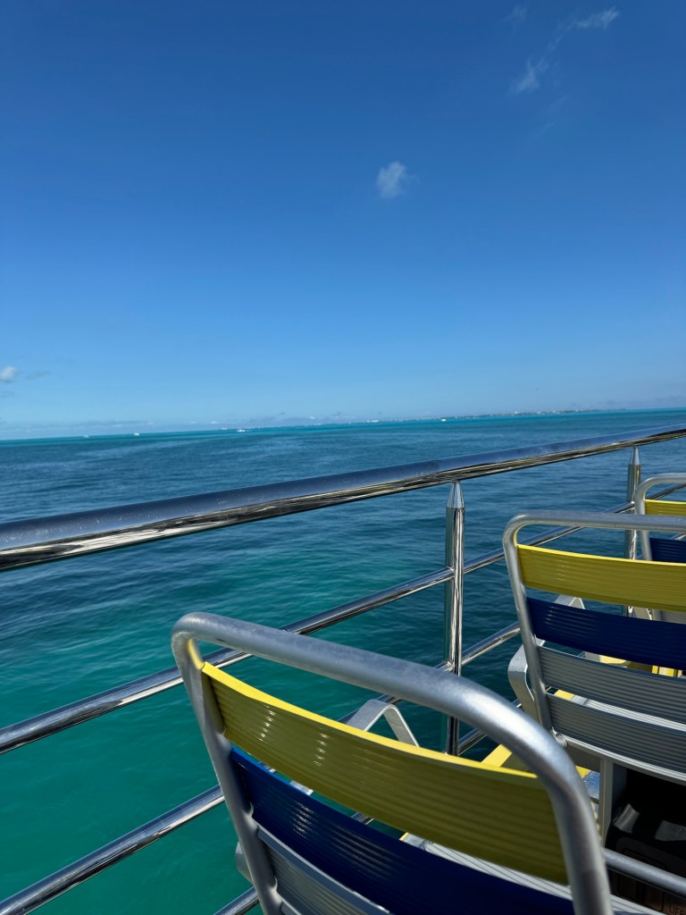 The ferry tickets are $30 US per person for a round trip. The boat ride is an experience in itself, complete with live music. Upstairs is open-air and a better view, but downstairs is air-conditioned. The boat ride itself is only about 30 minutes, but it takes about 15 minutes for everyone to board. Don’t lose your ticket. You get one ticket for there and back so I kept ours in my phone case.