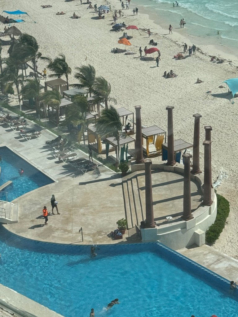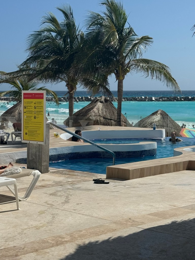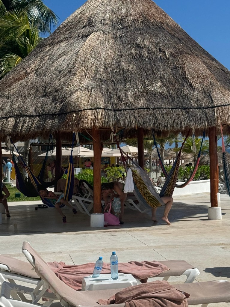 There are 3 pools, a hot tub, a kid’s pool, hammocks, beach chairs, palapas, Balinese beds on the beach, shaded beds, organized activities, a beach volleyball court, live music, a kid’s club, a towel service (the towels are oversized and very nice!), a spa, shops, and of course…the beach! All are included except the Balinese beds on the beach and the spa. You can get a coupon for one day for a free bed, but you have to reserve it, arrive by 9 am, and purchase a minimum of $50 in premium food and/or beverages. I’m not sure it’s worth it as there are first come, first serve shaded beds that not on the beach that are free. ONE NEGATIVE- the hot tub closes at 7:00 pm.🤦♀️