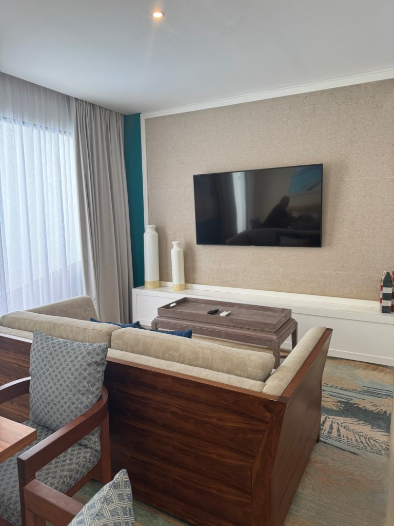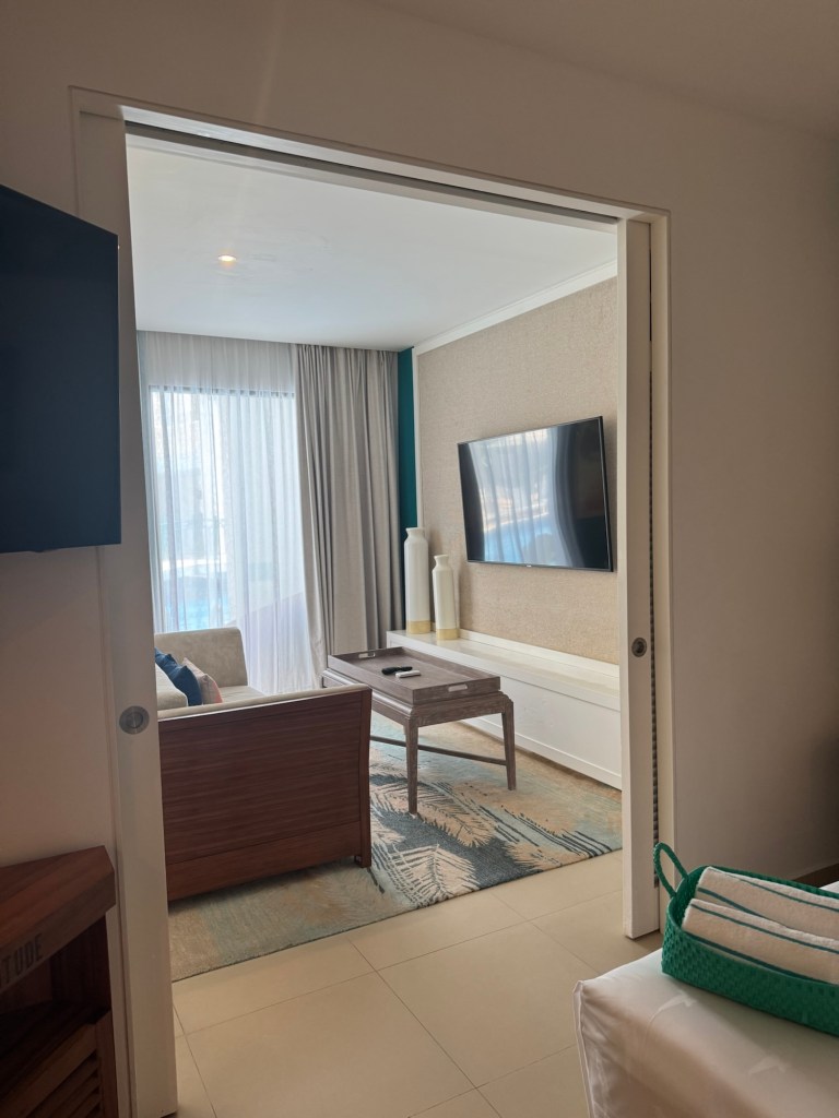 Our room was amazing. We had inquired about a room upgrade prior to arriving. We only ASKED how much it would cost, only to have them tell us we owed an additional $840 at check in for an upgrade. When we complained that we only ASKED how much it would be, they offered to make the upgrade a much bigger room (Presidential Suite) AND the swim out room we had originally asked about for the same $840 (or an extra $140 a night). The presidential suite was very large, and it was very nice having the pool come right up to our room. It was extra beautiful at night. I loved having my own private place poolside to read a book. I don’t think the swim out was actually worth the money we spent though. I loved it, but not $840 worth. If I had to do it again, I would have refused the upgrades. It also felt a little scammy that we just asked how much it would cost, and they just charged us for it. Also, the last day of our stay we had some noisy neighbors swimming, and they were swimming right outside of our room. 🤦♀️