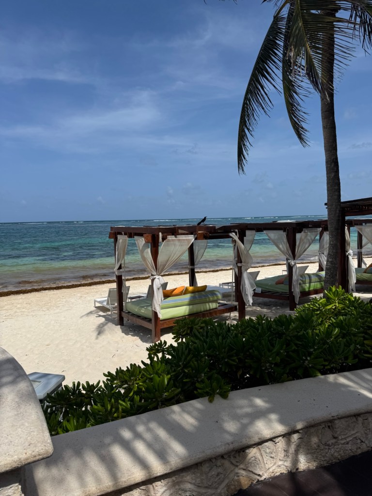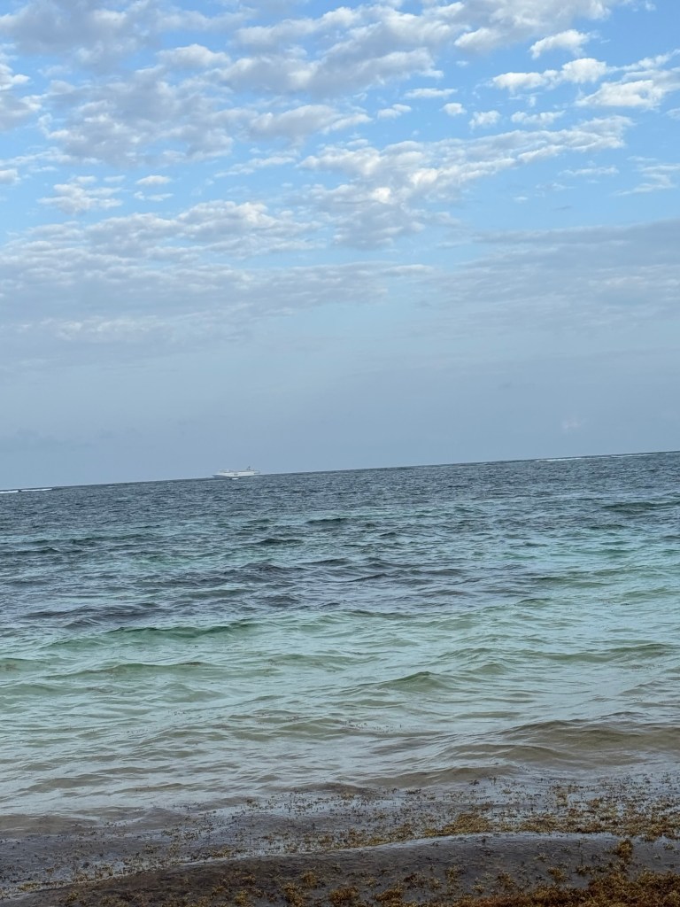 7. The beach was much smaller than other resorts we’ve stayed at. The seaweed was also a problem as it smelled and was so thick that we didn’t want to walk through it. There were parts of the beach that had a mountain of seaweed. The ocean and the sound of the waves were still beautiful.