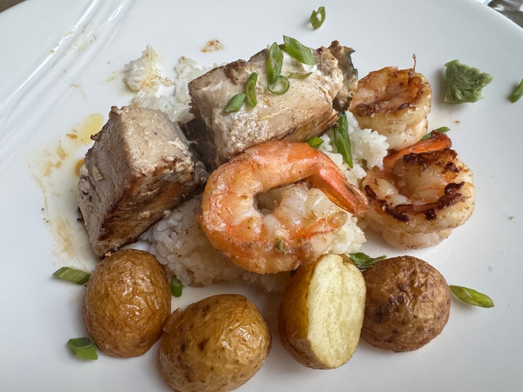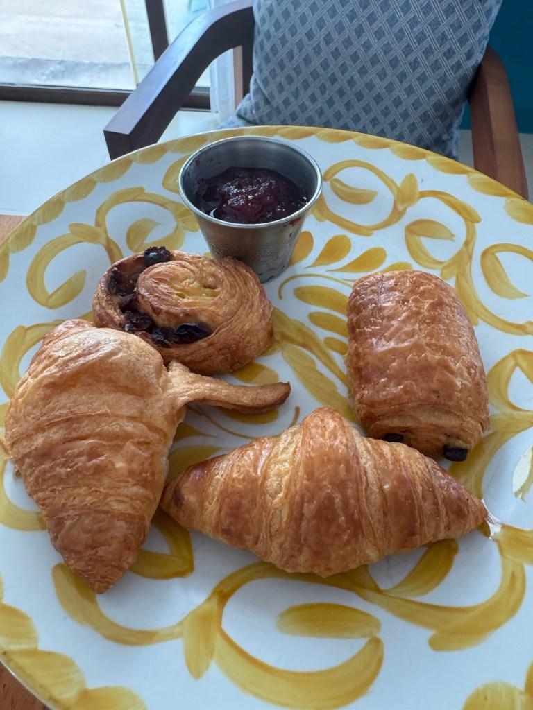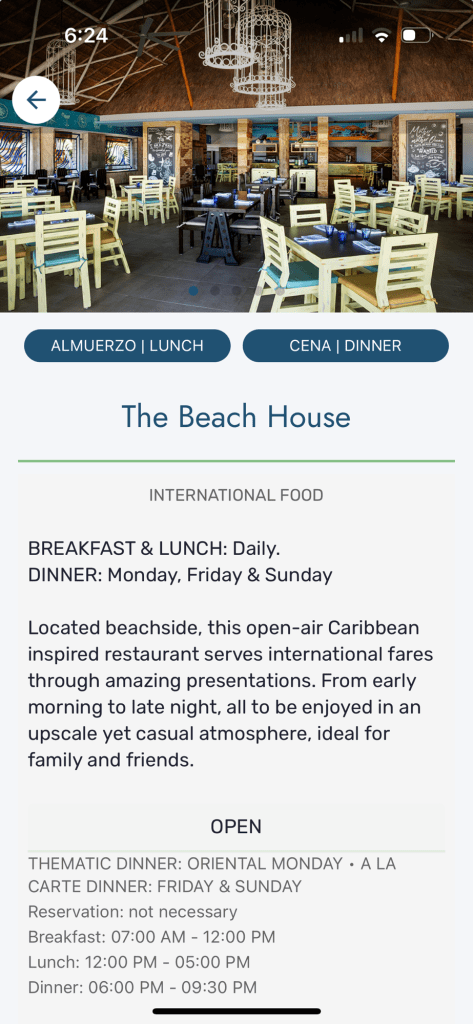 Restaurant #1- The Beach House. It is open every day for breakfast, lunch, and some days for dinner, but the food is very unimpressive. The views are beautiful though, since it does overlook the beach. If you’ve been on a cruise, the Beach House is the “cruise buffet”. They do have theme nights and some entertainment. It’s easy to get a table, and no reservations are needed. The Asian night main dishes were particularly bad. They have some resident raccoons who made frequent appearances, which were adorable, but made me a little leery of cleanliness. 🤦♀️
