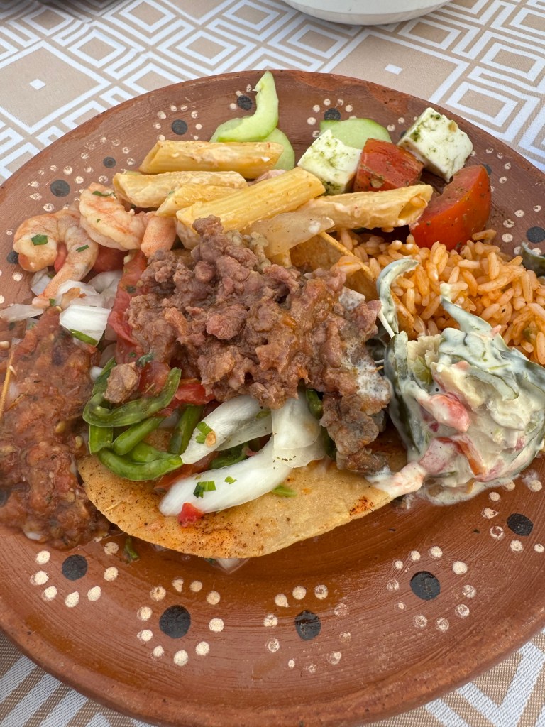 On Saturdays, they have a Mexican Fiesta buffet on the beach. The ambiance was very cool, but the pork was not thoroughly cooked, and none of the food was labeled. For someone like me with food allergies, it was too scary to take chances. There was also a ton of seaweed, so the smell was not good. There were also sand fleas, and our legs were covered with bites after the meal. They have a dinner show too, but we left before the show because the smell and the bugs became overwhelming.